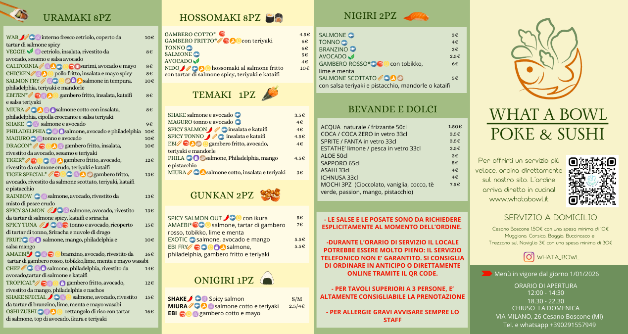 Ogni giorno selezioniamo ingredienti freschi per offrirti pokè personalizzati, sushi preparato al momento e piatti caldi dal sapore autentico. Non siamo una catena: le nostre pokè vengono servite in veri piatti di porcellana, perché crediamo in un' esperienza più curata e di qualità. Sei il benvenuto per la tua pausa pranzo o per una cena rilassata, con la comodità del servizio al tavolo o delle consegne a casa.